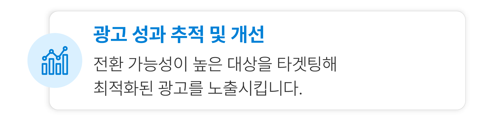 네이버 GFA, 구글 광고, 숏폼 콘텐츠 활용(짧은 영상 광고 등) 등의 채널을 통해 효율적이고 확실한 성과를 창출 할 수 있습니다.
